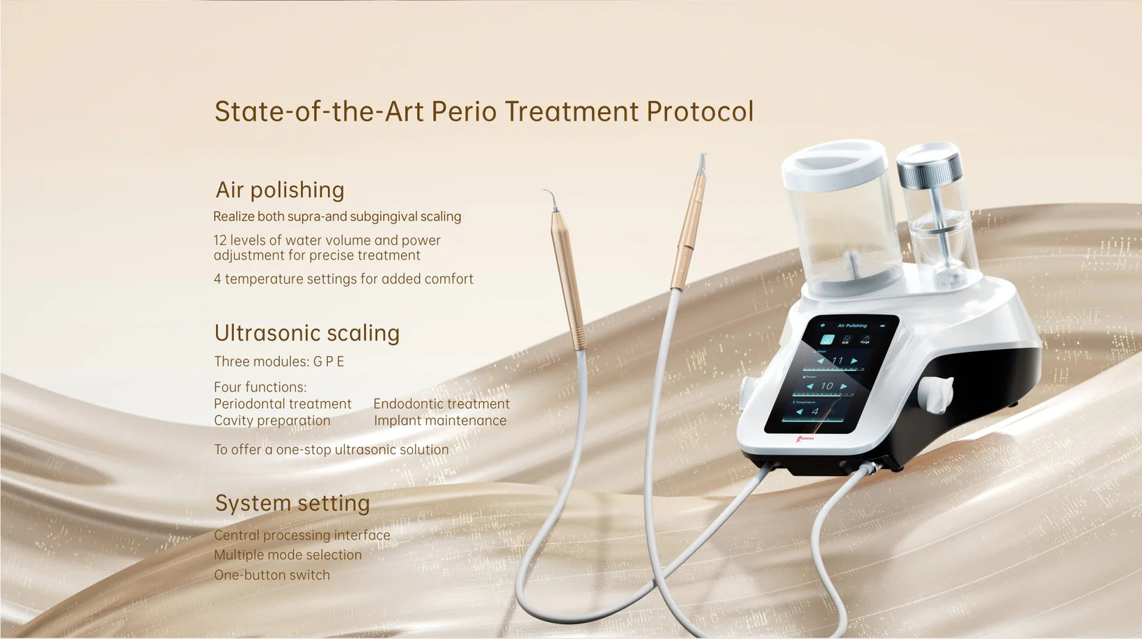 • Additional handpiece for the PT-A & PT-B scaler unit
